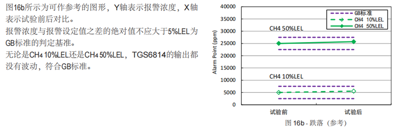 就以GB15322.1-2619為判斷依據(jù),用TGS6814做出來的報(bào)警器完全可以符合標(biāo)準(zhǔn)。線性度誤差這些自不必說,必須是超規(guī)格滿足要求。下面我們主要來說說TGS6814傳感器的長期穩(wěn)定性、抗跌落、抗中毒的性能。